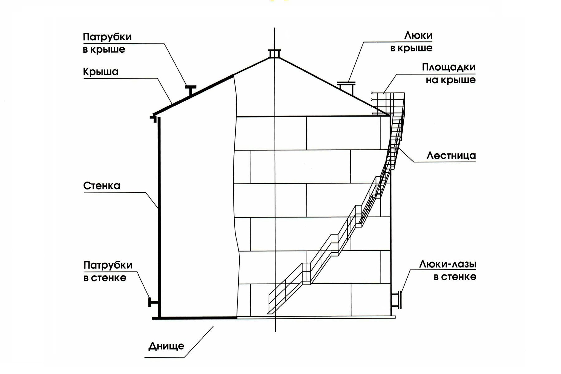 Резервуар вертикальный стальной цилиндрический состоит из несущих и ограждающих конструкций.