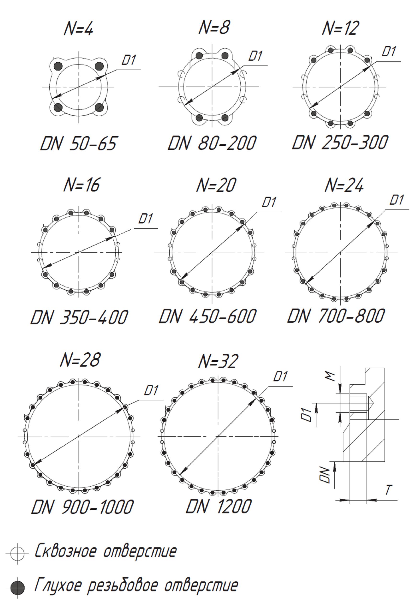 Присоединительные размеры для подбора ответных фланцев и крепежа PN 10 по ГОСТ 33259-2015